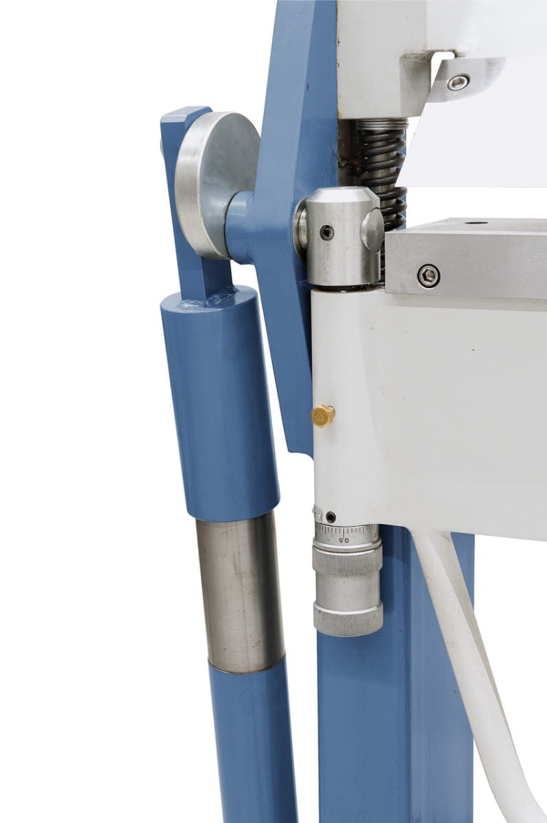 - Proste przestawianie docisku górnego za pomocą pedału, ręce sa wolne i można swobodnie pozycjonować element obrabiany