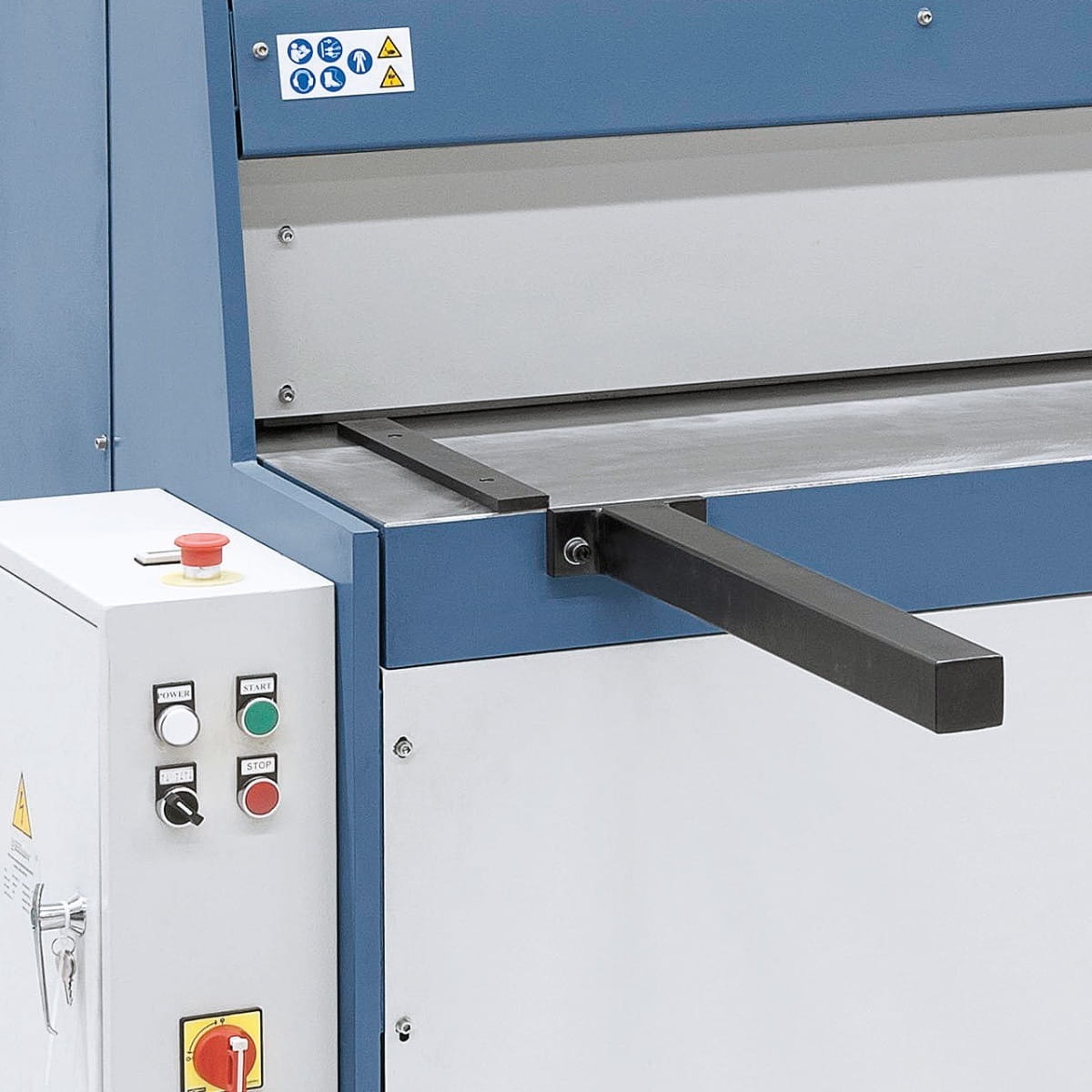 - Obsługa za pomocą pedału nożnego, dłonie pozostają wolne dla optymalnego ustawienia blachy