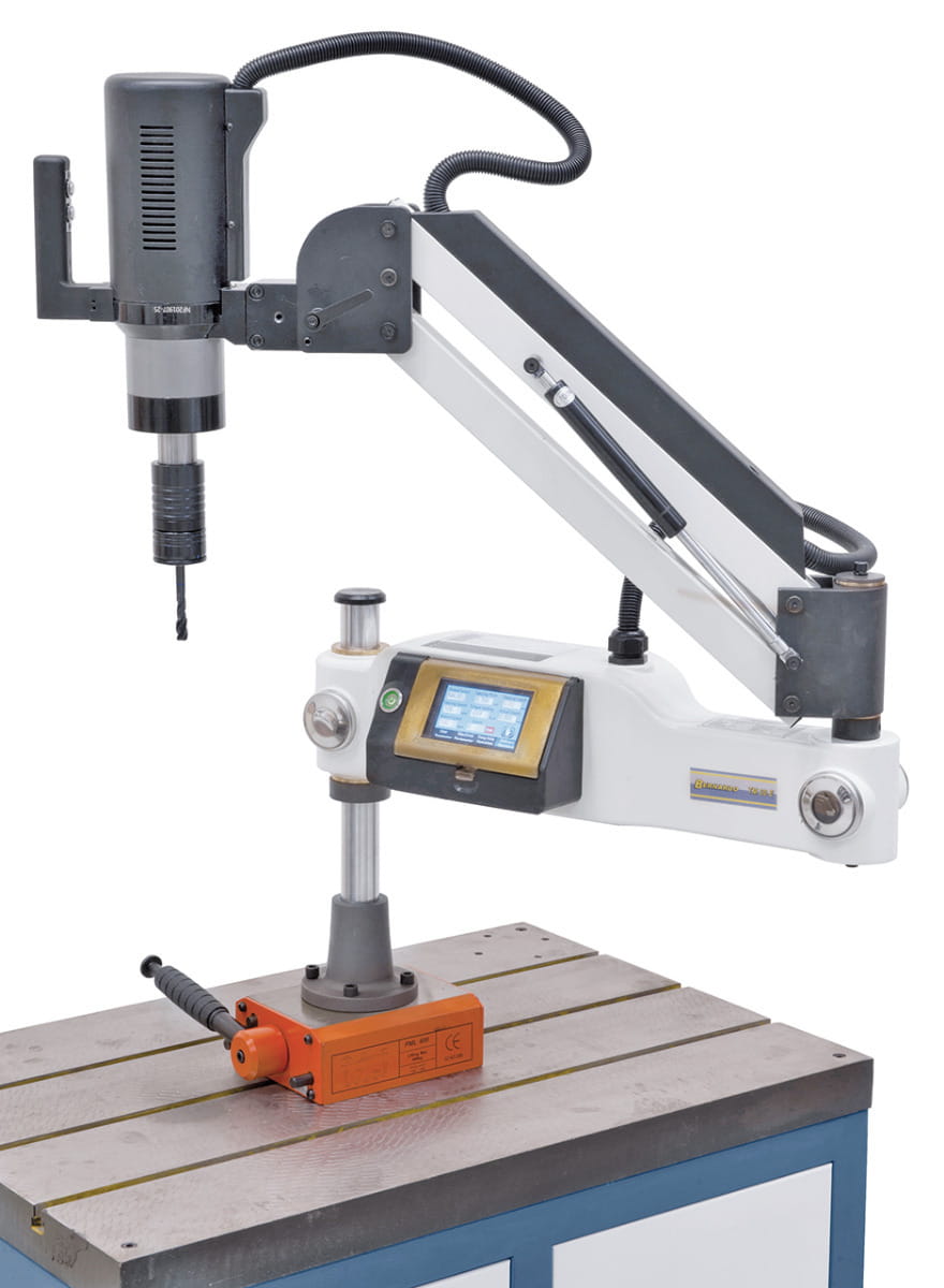 - Zawiera ramię obrotowe o dużym promieniu dla łatwego pozycjonowania gwintownika na przedmiocie obrabianym