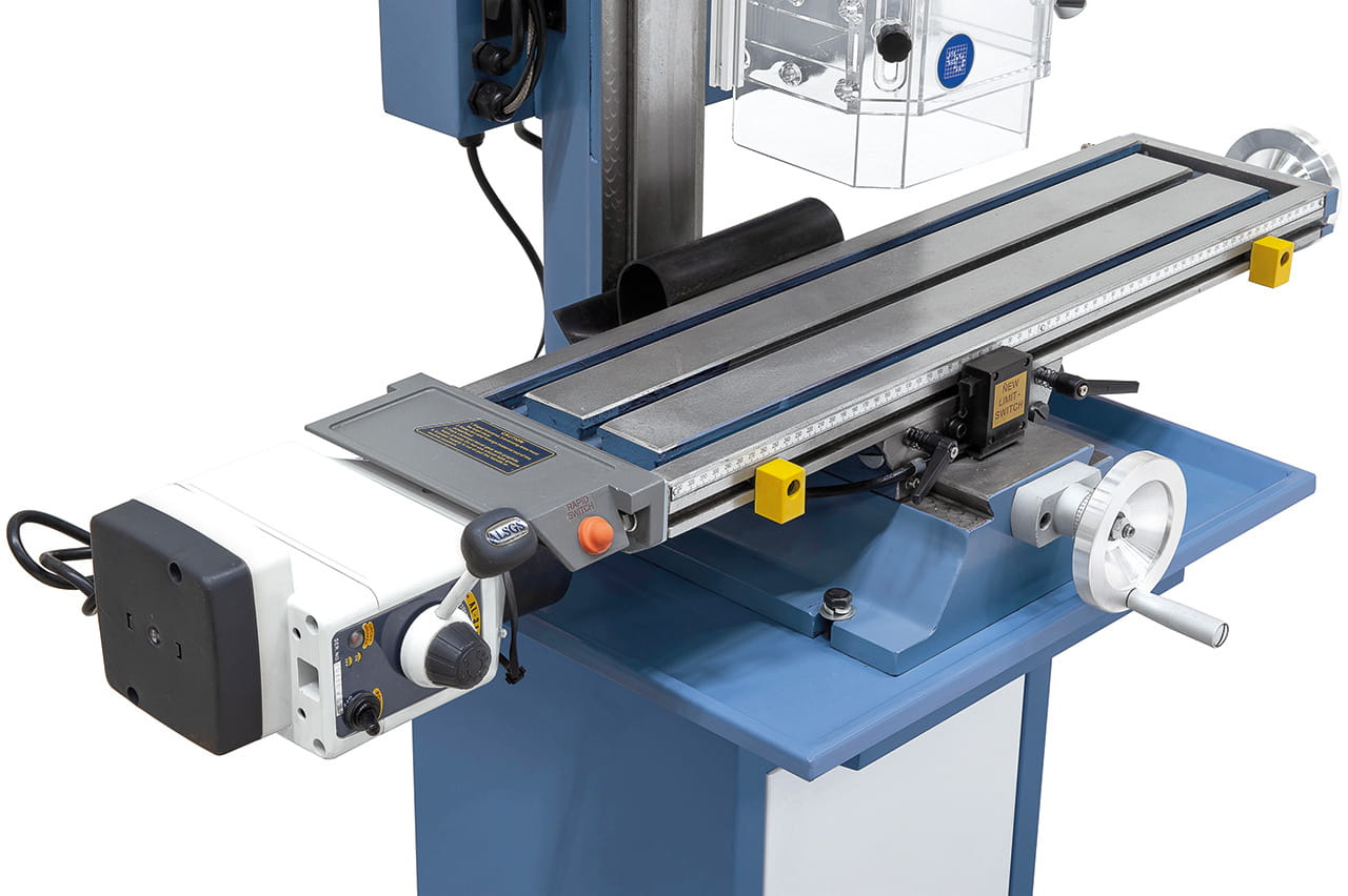 - Ten model wyposażony został w standardzie w automatyczny posuw stołu w osi x